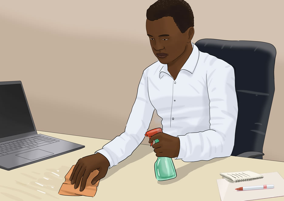 Make sure your workplace is regularly cleaned. This helps prevent the spread of infection, and a cleaned workplace also maintains morale and a sense of professionalism.
