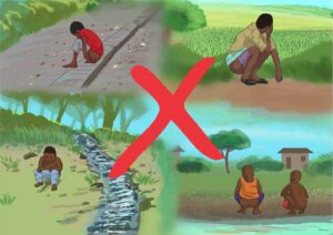 Open defecation contaminates the natural water sources, breeds disease vectors, causes foul smell and makes the environment unsightly/repulsive.